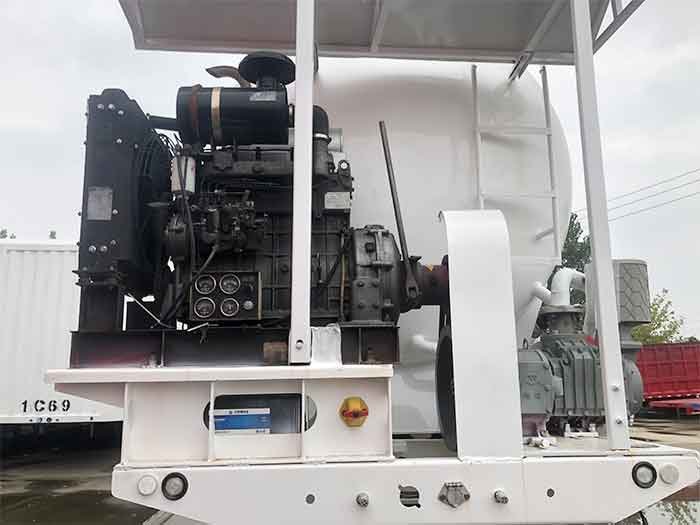 A2: It uses a pneumatic discharge system powered by a diesel engine and air compressor, ensuring fast, efficient, and residue-free unloading.